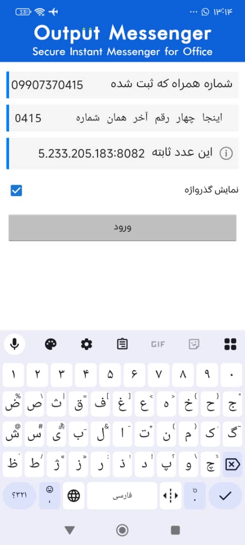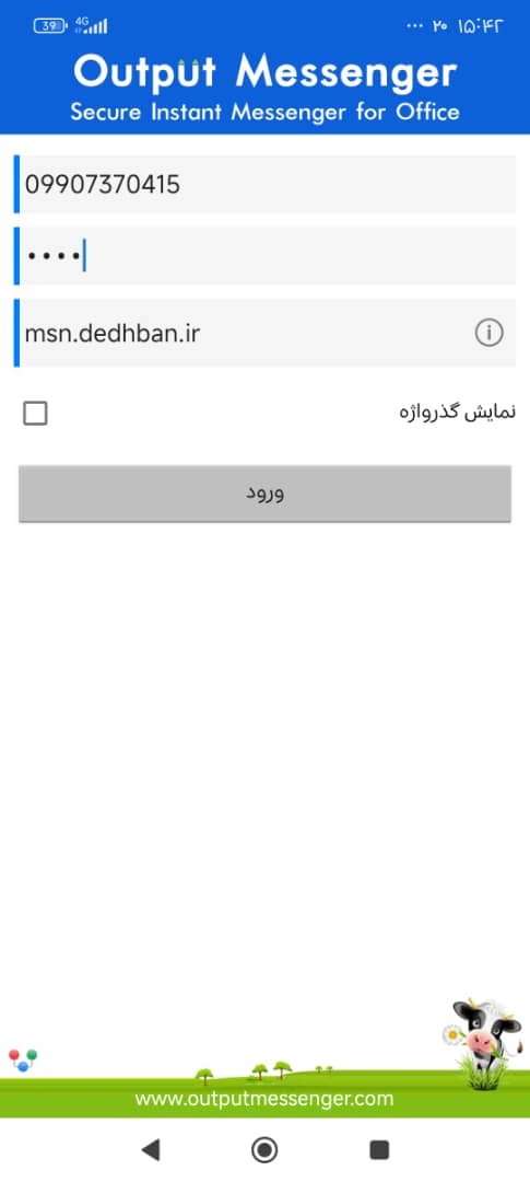 یاسر جلالی هستم و قرار هست راجع به برنامه Output Messenger با شما صحبت کنم . دوستان زنگ میزنن و از علت خاموشی برنامه شاکی هستن عارضم به حضور شما نرم افزار بالا مدتی غیر فعال بود اکنون مجدد سرور مربوط به آن راه اندازی و مجدد قابل استفاده هستش لذا برای دوستانی که این برنامه رو دارن و قبلا نام کاربری دریافت کردن ورود بدون مشکل خواهد بود و نحوه عمل هم این شکله که در قسمت بالا شماره همراه و در قسمت پایین یعنی بخش رمز عبور ۴ رقم آخر شماره تلفن همراه خودشون و همچنین در کادر آخر که مهمترین بخش ارتباطی نرم افزار هست می تونید به دو روش عمل کنید : کادر پایین یا ip و دامنه : از دو روش زیر استفاده کنید : دقت کنید ۱ روش انتخاب کنید مثلا روش: ب